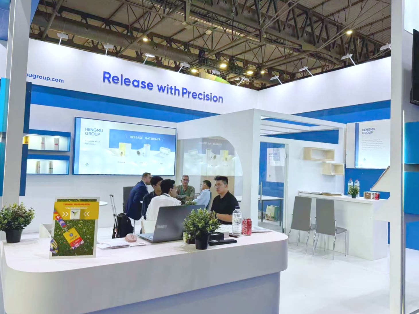 HENGMU presented complete Release Material, featuring specialized solutions including Glassine, CCK, SCK, PCK and MGK. These advanced materials cater to sophisticated applications in self-adhesive labeling, industrial tape manufacturing, and hygienic product development. HENGMU's technical team engaged in profound discussions with European converters and brand representatives, addressing specific requirements for sustainable solutions and customized material specifications.
